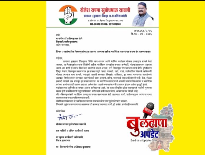 Buldhana update: बुलढाणा / प्रतिनिधी गावागावांत विविध सण-उत्सव, धार्मिक कार्यक्रम व मिरवणुकांदरम्यान उधळण्यात येणाऱ्या बारीक प्लास्टिक कागदांमुळे पर्यावरण, सार्वजनिक स्वच्छता आणि जनावरांच्या आरोग्यावर गंभीर परिणाम होत असल्याने या प्रकारावर तातडीने बंदी घालावी, अशी जोरदार मागणी बुलढाणा जिल्हा काँग्रेस कमिटीचे उपाध्यक्ष शैलेश सपना सुबोधभाऊ सावजी यांनी जिल्हाधिकारी यांच्याकडे निवेदनाद्वारे केली आहे. सादर निवेदनात नमूद करण्यात आले आहे की, जिल्ह्यात विविध सण-उत्सव आणि धार्मिक कार्यक्रम मोठ्या उत्साहात साजरे केले जातात. या मिरवणुकांमध्ये रंगीबेरंगी बारीक प्लास्टिक कागदांचा मोठ्या प्रमाणात वापर केला जातो. मिरवणूक सुरू असताना हा कचरा आकर्षक वाटत असला तरी कार्यक्रम संपल्यानंतर तो रस्ते, नाले, सार्वजनिक ठिकाणे आणि गावातील विविध भागांत विखुरलेला दिसून येतो. त्यामुळे स्वच्छतेचा प्रश्न गंभीर बनत आहे. निवेदनात पुढे म्हटले आहे की, हा प्लास्टिक कचरा पाण्याच्या नाल्यांमध्ये अडथळा निर्माण करतो. त्यामुळे पावसाळ्यात पाणी तुंबणे, दुर्गंधी निर्माण होणे आणि आरोग्याच्या समस्या वाढण्याचा धोका निर्माण होतो. तसेच गावात मोकाट फिरणाऱ्या गायी, बैल, शेळ्या व इतर जनावरे अन्न समजून हा प्लास्टिक कचरा खातात. प्लास्टिकमधील रासायनिक घटक त्यांच्या आरोग्यास घातक ठरत असून अनेकदा गंभीर आजार व मृत्यूचाही धोका निर्माण होतो.पर्यावरणाच्या दृष्टीनेही हा कचरा अत्यंत घातक असल्याचे निवेदनात नमूद करण्यात आले आहे. प्लास्टिक सहज विघटित होत नसल्याने मातीची गुणवत्ता कमी होते, तसेच पर्यावरणाचे संतुलन बिघडते. या पार्श्वभूमीवर मिरवणुकांमध्ये प्लास्टिक कागदांचा वापर व उधळण तातडीने बंद करावी, पर्यावरणपूरक पर्यायांचा वापर करण्याबाबत जनजागृती करावी, ग्रामपंचायत व स्थानिक प्रशासनास योग्य सूचना द्याव्यात आणि नियमांचे उल्लंघन करणाऱ्यांवर कठोर कारवाई करावी, अशी मागणी शैलेश सपना सुबोधभाऊ सावजी यांनी केली आहे. या निवेदनामुळे पर्यावरण संरक्षण, स्वच्छता आणि जनावरांच्या आरोग्याचा प्रश्न पुन्हा ऐरणीवर आला असून जिल्हा प्रशासन याबाबत कोणती भूमिका घेते याकडे सर्वांचे लक्ष लागले आहे.